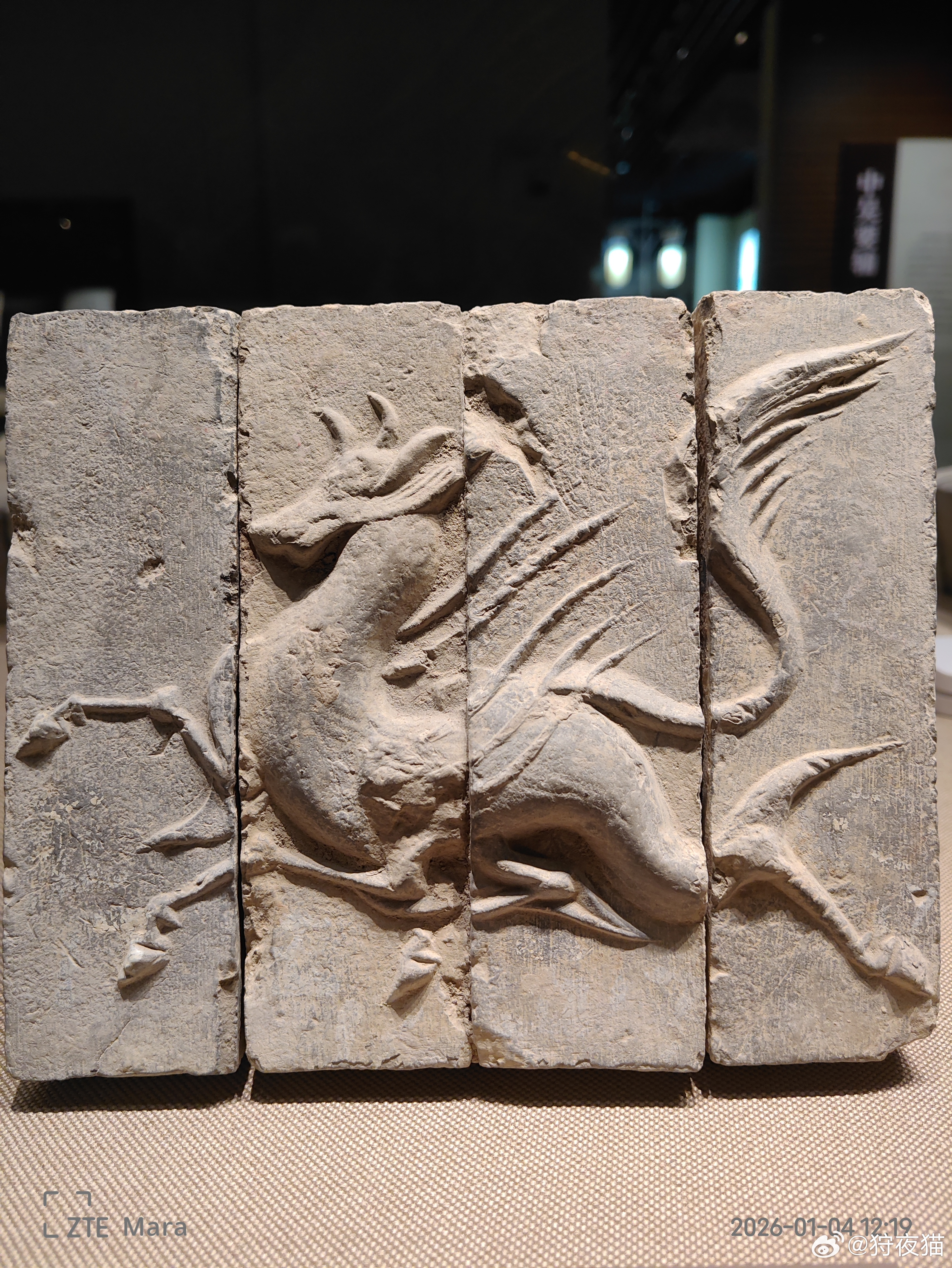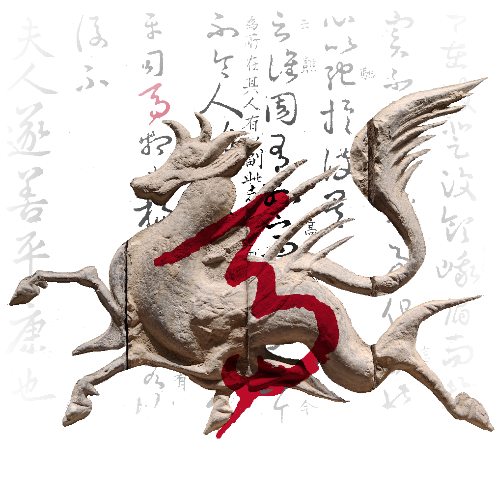 ![]() | 青龙:画像砖,南朝(420年-589年),常州博物馆 在中国神话中,青龙为四神之东方守护神,经常与白虎、朱雀、玄武、或羽人相伴出现在绘画和雕刻上。他踏云飞羽、飘逸俊秀、恣意逍遥。