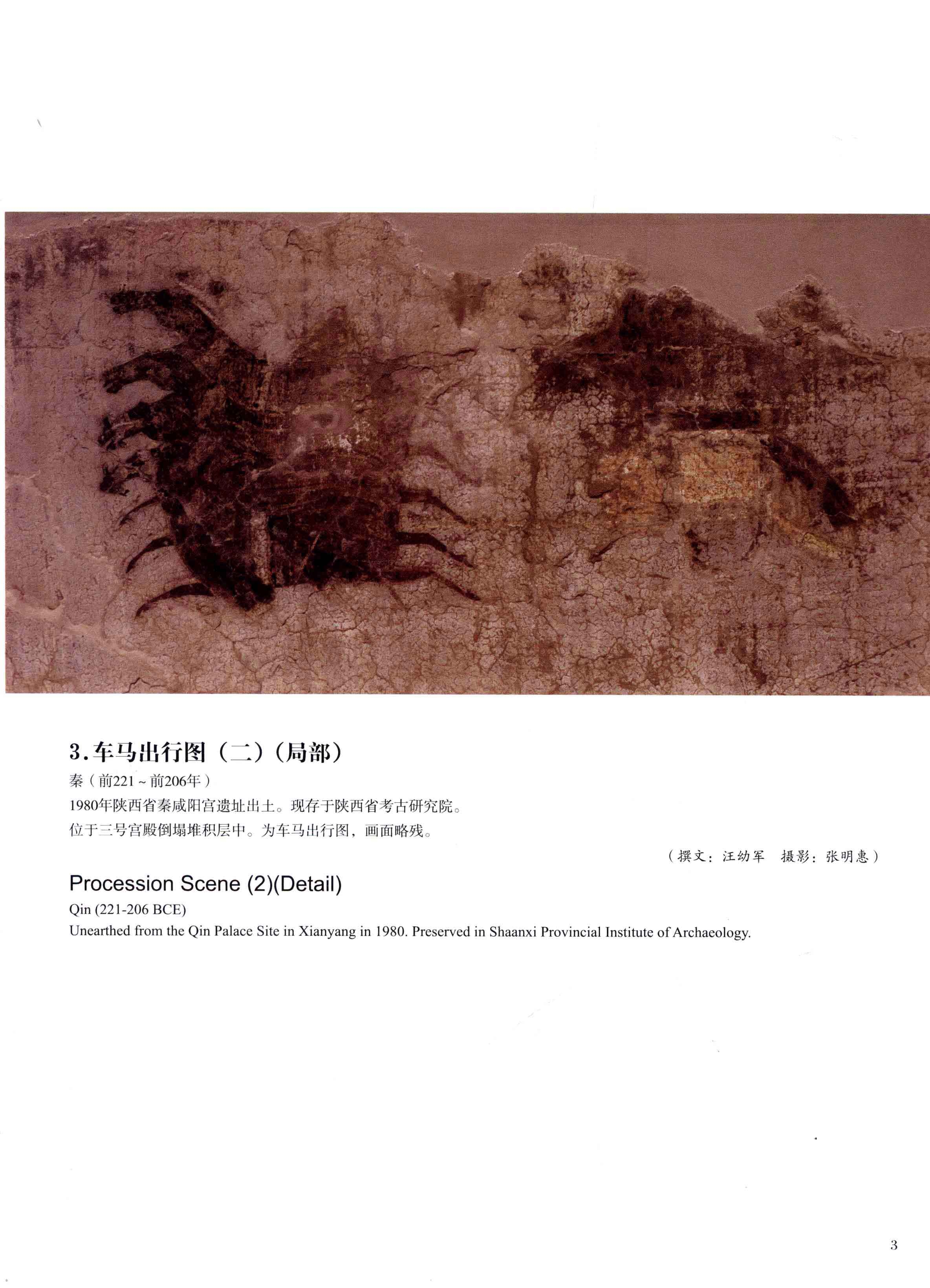 ![]() | 咸阳宫壁画,秦朝(前221年-前207年),1979年出土于秦咸阳宫三号宫殿遗址,藏于陕西历史博物馆秦汉馆。 |